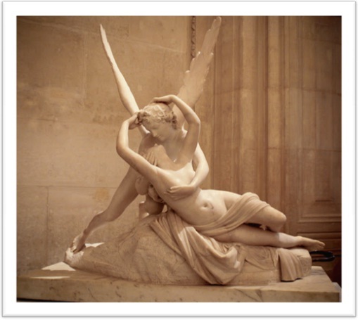 Escultura de Antonio Canova, artista neoclassicista italiano, a mitologia grega de Cupido e Psiquê.