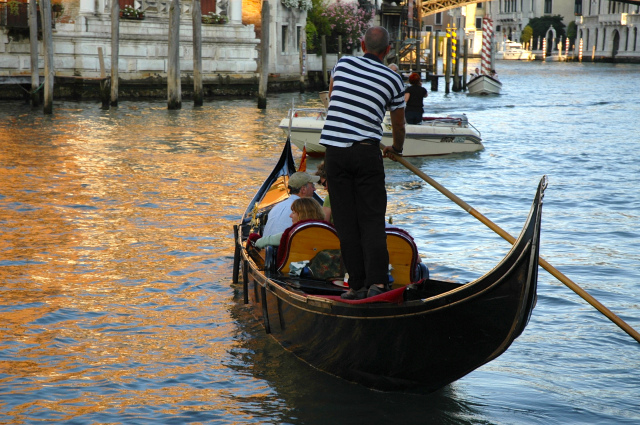 Outra maneira de circular pelo Grande Canal é de gôndola, a embarcação que é a cara de Veneza. É caro, mas os turistas adoram, os preços podem variar de 80 a 100 Euros. À noite é mais caro. No passado, antes dos barcos a motor, era a embarcação mais utilizada para o transporte de pessoas e cargas através dos canais.