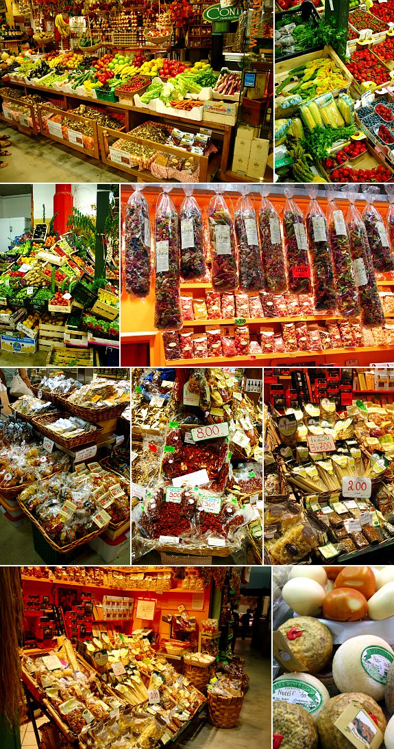 Em Florença temos o mercado Municipal que aguça todos os nossos sentidos. Cheiros, cores, ver os produtos e poder comparar com a nossa realidade Brasileira.
